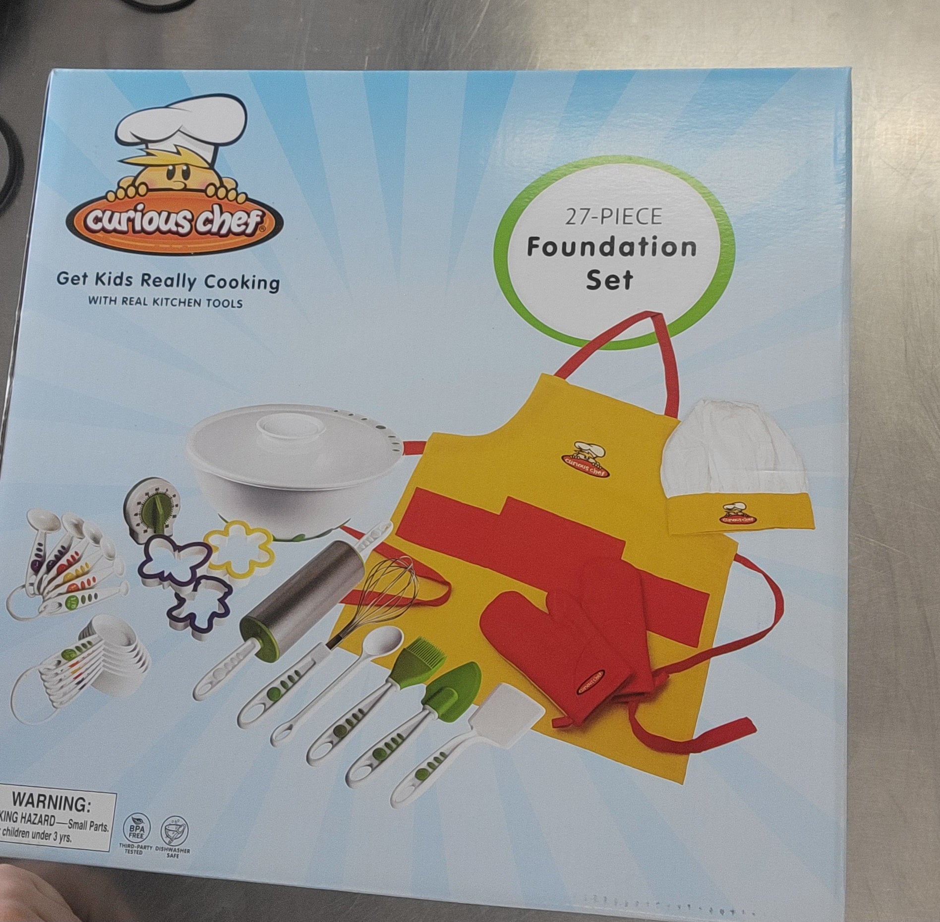 This 27-piece cooking foundation set from Curious Chef provides all the essential tools for young chefs to explore their culinary talents. With our set, children can learn and create delicious meals while developing necessary cooking skills. Perfect for beginners and a great way to inspire a love for cooking.